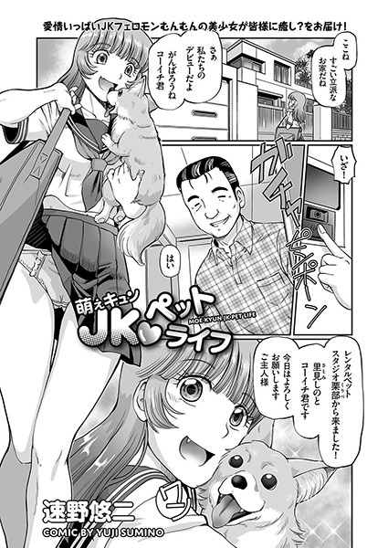 動物の派遣を通して皆様に溢れんばかりの「萌え」をお届けしたいと願うペットショップ勤務の美少女JKが、とある個人宅を訪問。一人暮らしのナイスミドルな紳士と自慢のお利口犬・コーイチ君が戯れる姿に得も言われぬ充実感を覚えるも、彼が時おり見せる無邪気(?)な言動に、やがて当惑とほのかな恐怖すら感じ始め…。JK特有の甘くすえた、うぶい牝エキスが全編満載! 実力派作家が描きぬく、萌え殺確実の淫行ストーリー!!